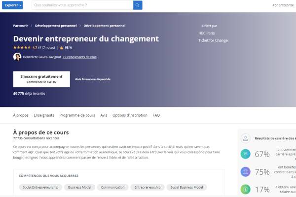 L’HEC offre son module « Entrepreneur du changement » pour accompagner toutes les personnes souhaitant avoir un impact positif dans la société. Une formation pour concilier entrepreneuriat et changement tout en favorisant le passage de l’idée à l’action.