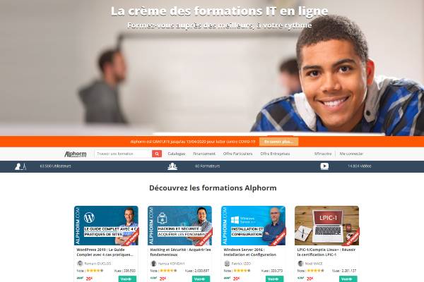 Alphorm est une plateforme française de formations aux nouvelles technologies de l’IT. Ces formations sont destinées à tous les profils novice ou expert comme les étudiants, employés, entrepreneurs et tous passionnés de technologies informatiques de pointe. Toutes les vidéos sont tournées par des experts dans le domaine.