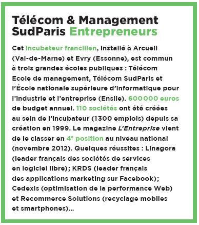 Voilà trois mois à peine qu’ils ont posé leurs valises à Arcueil (Val-de-Marne), dans l’antenne de l’incubateur Télécom & Management SudParis Entrepreneurs. Les trois associés d’Abstrium, lauréats de la troisième édition du Trophée Start-up numérique * voient l’année 2013 démarrer sous de très bons auspices. « Nous allons pouvoir recruter cinq à six développeurs et mieux répondre à la demande », se félicite Charles du Jeu, 35 ans, centralien, à l’origine de la création de cette start-up. Si cet éditeur est né seulement mi-2012, AjaXplorer, le logiciel libre qu’il développe, existe depuis déjà quatre ans. Féru de musique, Charles du Jeu l’avait imaginé pour stocker et partager ses morceaux préférés… Depuis, son logiciel de gestion de fichiers en ligne a fait le tour de la planète (400 000 utilisateurs) et les demandes affluent pour mieux formaliser les échanges. « Certaines entreprises ont besoin de garanties en matière de fiabilité et de sécurité. Nous leur proposons désormais des licences de maintenance, par utilisateur et par an », explique-t-il. Parmi ses premiers clients, il compte l’Ademe (Agence de l’environnement et de la maîtrise de l’énergie, 2 000 utilisateurs), Nikon Allemagne, Carrefour ou encore le Musée d’Orsay…