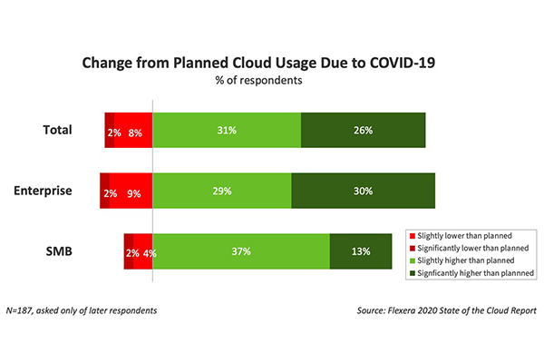 Le segment des logiciels en mode SaaS – le plus important – devrait atteindre une valeur de 117,7 milliards de dollars en 2021. Toutefois, les plateformes en mode PaaS connaîtraient un taux de croissance plus important, de 26,6 %, à plus de 55 milliards de dollars (contre 43 milliards en 2020), dû à la généralisation du télétravail et notamment du fait des alliances de plus en plus nombreuses entre fournisseurs de services Cloud et opérateurs de télécommunications. Il est clair que « sans autant d’applications, outils et services cloud, il n’aurait pas été possible d’envoyer des millions de travailleurs chez eux, maintenir les chaînes d’approvisionnement mondiales ou de faire évoluer les modèles économiques de l’industrie en quelques semaines », confirme ainsi The Flexera 2020 State of the Cloud Report.