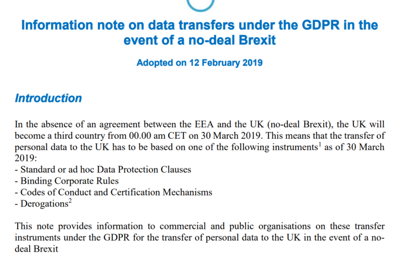 Sauvé, si l’ICO le dit c’est que cela doit être vrai… Mais ça c’était avant. Depuis tout le monde s’inquiète un peu d’un Brexit dur. Et voici ce qu’a publié sur ce point l’European Data protection Board.