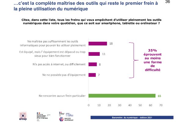 « Nous sommes passés d’une personne sur six qui n’utilisait pas d’ordinateur à une personne sur dix », indique Cédric O tout en rappelant l’effet mécanique du confinement qui a logiquement obligé plus de personnes à passer par le numérique pour travailler, communiquer et se former. Une avancée non négligeable qui doit être davantage accompagnée, étant donné les 13 millions de français qui sont encore en difficulté sur ce point.