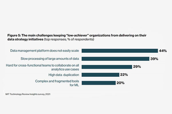 La collaboration favorisée par la technologie permet une culture data efficace. Les Chief Data Officers (CDO) interrogés accordent une grande importance à la démocratisation des capacités d’analyse et de ML. Ces capacités de pointe aident les utilisateurs métiers à prendre des décisions avisées, et marquent ainsi une forte culture data.
