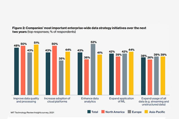 Les entreprises recherchent des plateformes cloud natives qui assurent gestion des données, analytique et ML. Leurs 3 priorités premières dans les 2 prochaines années reposent toutes sur une adoption plus large des plateformes cloud : améliorer la gestion des données, renforcer l’analytique et le ML, et étendre l’utilisation de tous types de données d’entreprise, y compris les données en streaming et non structurées.