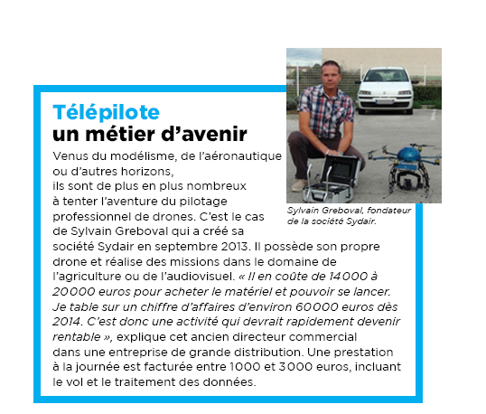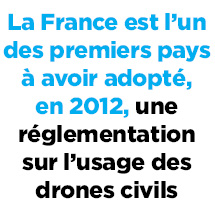 En mai 2012, la Direction générale de l’aviation civile (DGAC) définissait un premier cadre réglementaire à l’exploitation de drones pour un usage civil. Cela a permis le démarrage de la filière. Cette réglementation reste cependant très limitative : pas de vol de nuit, un drone ne peut voler au-dessus de 150 mètres d’altitude, les drones volant de manière autonome (sans pilotage en temps réel) ne peuvent pas peser plus de 2 kilos… Mais la DGAC pourrait prochainement assouplir son texte, notamment en ce qui concerne les vols de nuit. C’est ce qu’attend, par exemple, la SNCF qui envisage une surveillance nocturne de ses voies ferrées, via des drones équipés de caméras à infrarouge. Parmi les autres évolutions attendues, un véritable brevet de pilote de drones. C’est ce que préparent la FPDC et la DGAC. Aujourd’hui, il suffit de posséder le brevet théorique de pilotage d’avion et de suivre une formation pratique chez un constructeur ou un opérateur de drones pour devenir « télépilote ». Cela reste insuffisant aux yeux de bon nombre d’acteurs de la filière. Un brevet officiel de pilote de drones pourrait rassurer bon nombre de clients potentiels. Il devrait être mis en place d’ici à cet été.