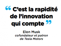 Elon Musk déclenche, le 12 juin dernier, un coup de tonnerre dans le secteur de l’auto- mobile. Le f lamboyant patron américain de Tesla annonce, via un simple billet de blog, que l’intégralité des brevets déposés par le constructeur de voitures électriques depuis sa création peuvent être librement exploités, y compris par ses concurrents. Cela représente 250 brevets rien que pour le dernier-né de la marque, le Model S. « Nous voulons innover assez vite pour rendre caducs nos brevets antérieurs dans les domaines qui comptent vraiment. C’est la rapidité de l’innovation qui compte », écrit-il. En agissant Elon Musk espère attirer les meilleurs ingénieurs que la philosophie open source inspire…