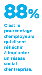 internes (88 %). Beaucoup d’entre elles peuvent espérer un retour sur investissement quasi-immédiat. Alain Bernard, directeur de la division PME-PMI et partenaires de Microsoft en est persuadé : « Les réseaux sociaux sont sans pareil pour doper le travail collaboratif. Les forces de vente, notamment les itinérants, peuvent travailler conjointement et simplement avec les autres fonctions de l’entreprise comme les techniciens et les financiers, en ignorant les frontières. » Comme l’illustre le fabricant de câbles Nexans, dont l’efficacité commerciale est boostée par le réseau interne : « Nous remportons des appels d’offres sur lesquels nos commerciaux, pourtant situés dans différents pays travaillent en équipes. Nous évitons aussi de répondre deux fois, via des entités différentes », témoigne Marie-Françoise Gaud, business information manager de la firme.
