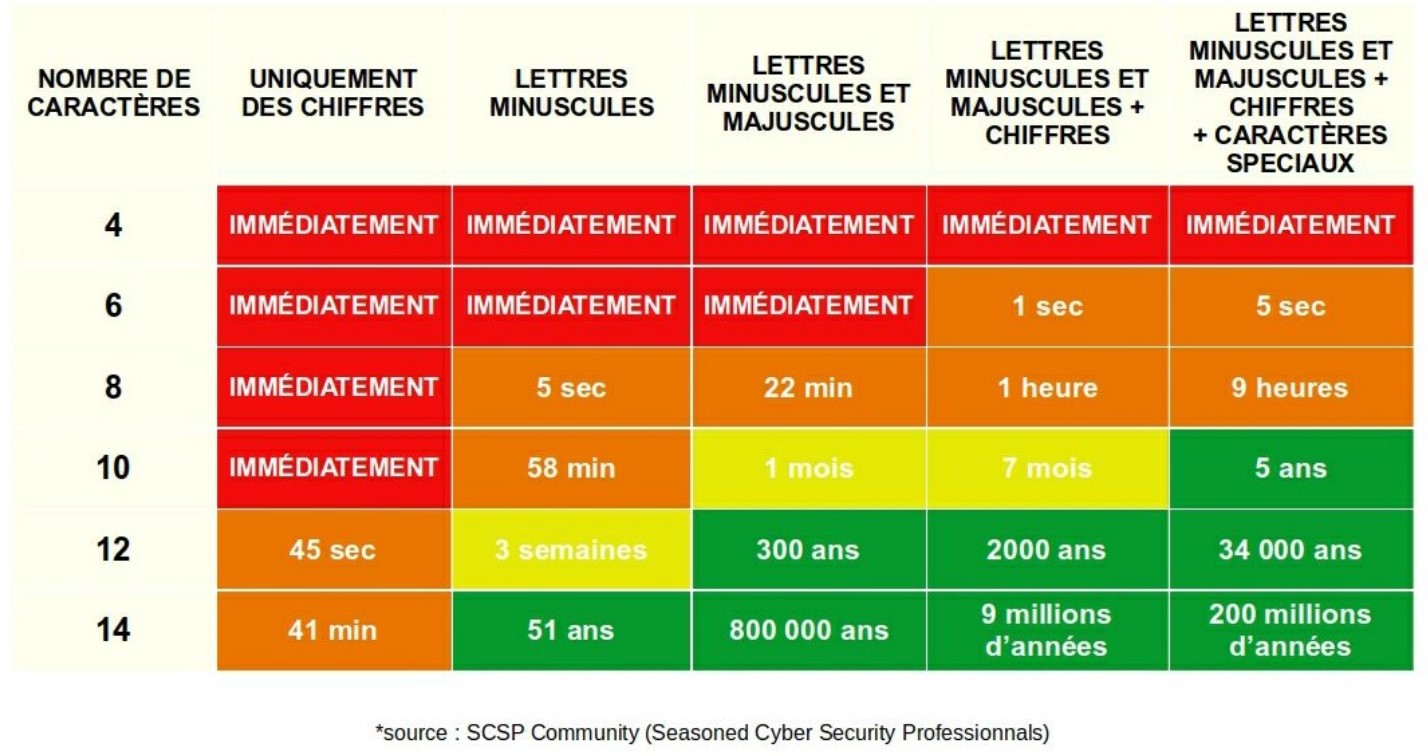 Extrait de https://greenlock.ghost.io/le-tableau-de-la-resistance-des-mots-de-passe/