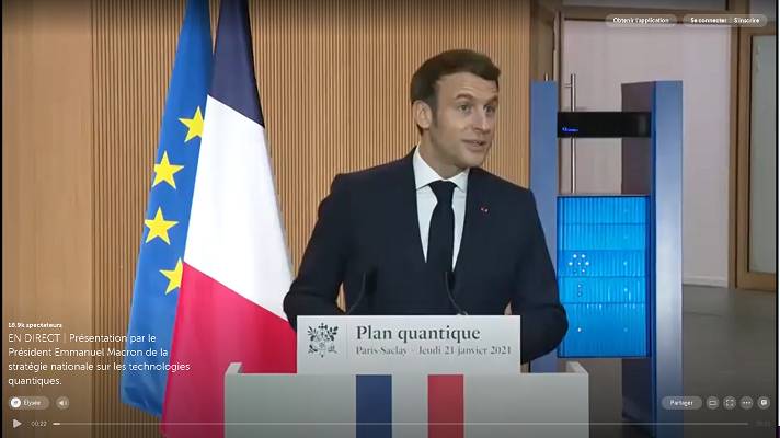 Live du Président Emmanuel Macron sur la stratégie nationale sur les technologies quantiques à Paris -Saclay le 21 janvier 2021.