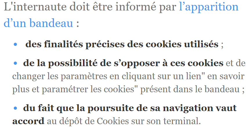 - Et rappelez-vous que vous êtes en partie responsable des cookies de tiers (Cf CE 6 juin 2018)