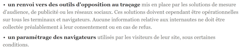 Reste la question des moyens relatifs à l’accord de l’internaute. Là encore le texte est on ne peut plus clair « son accord qui peut résulter de paramètres appropriés de son dispositif de connexion ou de tout autre dispositif placé sous son contrôle ». Qui a vu ou lu que l’usage de CMP (Consent plateform management) était obligatoire ?