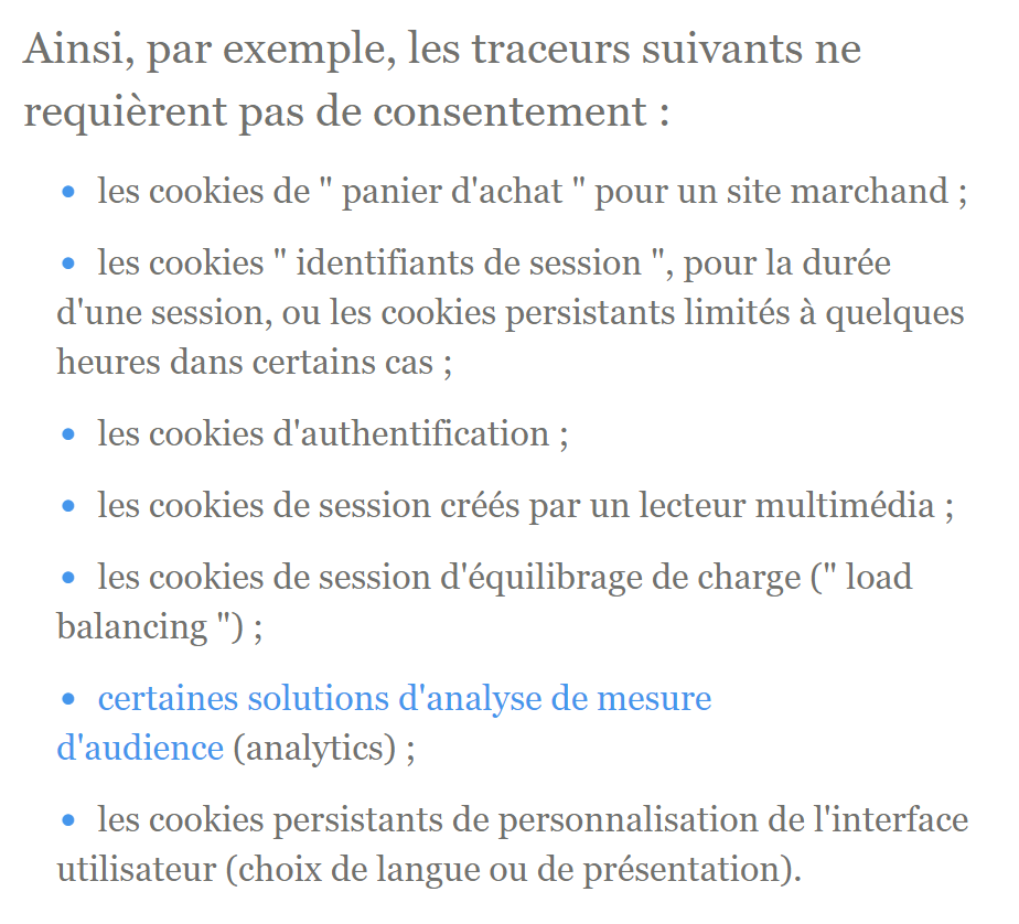 La Cnil donne d’ailleurs une liste de cookies pour lesquels le consentement n’est pas requis.