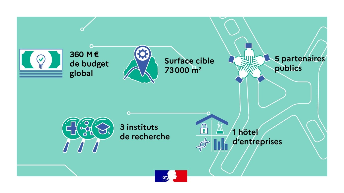 Emmanuel Macron a notamment annoncé la création du « PariSanté Campus », dédié à la santé et au numérique, sur le site de l’ancien hôpital d’instruction des armées du Val-de-Grâce. Soit un espace de 73 000 mètres carrés (géré par un concessionnaire) qui seraient partagés entre acteurs publics et privés d’ici à 2028. Le tout pour un financement bipartite de près de 400 millions d’euros, dont 45 proviennent d’ores et déjà du plan de relance post-Covid du gouvernement et 180 millions sont issus de la loi de programmation de la recherche.
