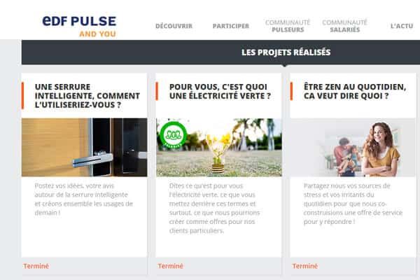 Gaël Le Boulch. L’idée de cette plateforme est d’utiliser la co-innovation comme levier pour améliorer la relation client. Nous nous adressons donc aux particuliers pour construire de nouvelles offres en ce qui concerne le bien-être dans l’habitat, la mobilité et la transition énergétique. Nous avons été créés en mars 2016 et l’on compte aujourd’hui 5 500 « Pulseurs » en France (clients ou pas du groupe) qui nous suivent très régulièrement. Souvent, ils ont d’ailleurs été recrutés par le bouche-à-oreille…
