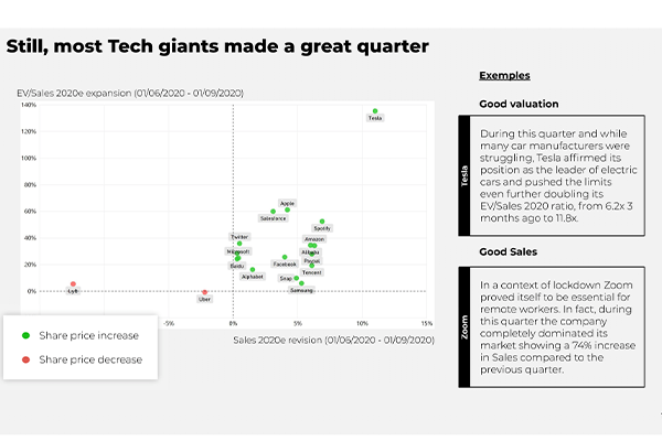 “Quasiment tous les géants de la tech sont dans le vert mis à part Uber et Lyft”, insiste Jérémy Taïeb, analyste financier chez Fabernovel. Les ventes ont connu certes une petite baisse mais bien loin de ce qu’avaient prédit les experts financiers. Les bénéfices ont eux été très bons, montrant encore une fois la capacité de résilience des géants de la tech face aux crises.