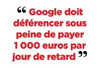En condamnant Google à retirer des liens diffamant, le juge des référés français rappelle au moteur de recherche qu’il ne peut arbitrairement décider seul d’exclure une requête de déréférencement. L’autorité judiciaire se pose ainsi en gardienne du droit à l’oubli, et reconnaît l’urgence de la situation, puisqu’elle enjoint le moteur de recherche à déréférencer sous astreinte provisoire de 1 000 euros par jour de retard. Google a tenté de limiter les conséquences de cette injonction à ses seuls liens assortis du nom de domaine « google.fr » mais sans succès. Le tribunal de grande instance de Paris a considéré que, puisqu’il est possible de se connecter sur toutes les autres terminaisons du moteur de recherche depuis la France, toutes les pages Google sont concernées.