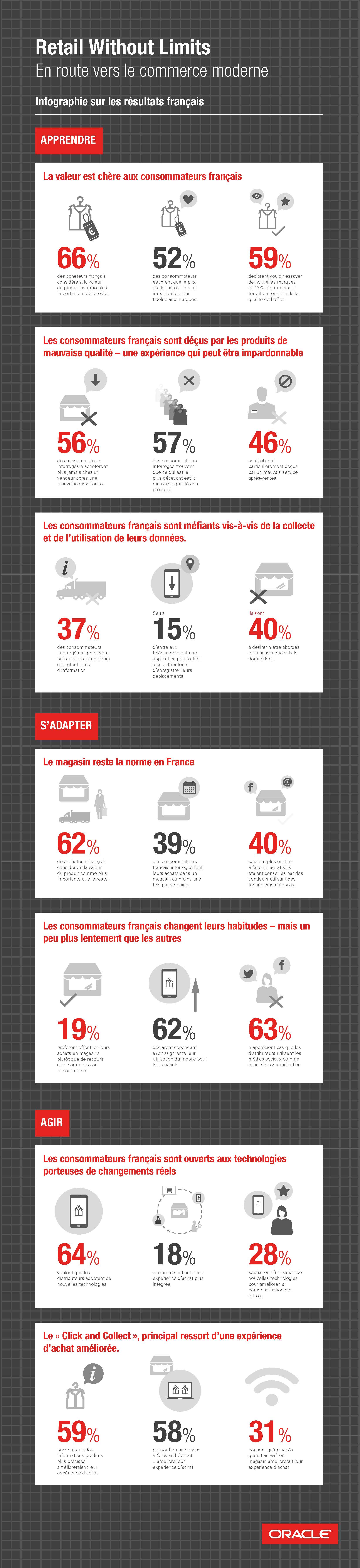 Oracle Retail vient de publier les résultats français de son étude, « Retail Whitout Limits » sur l’évolution des comportements des français face aux retailers et acteurs du E-commerce. Cette étude décrit également les spécificités des consommateurs français par rapport au public mondial et les grands enseignements que les acteurs du e-commerce doivent en tirer.