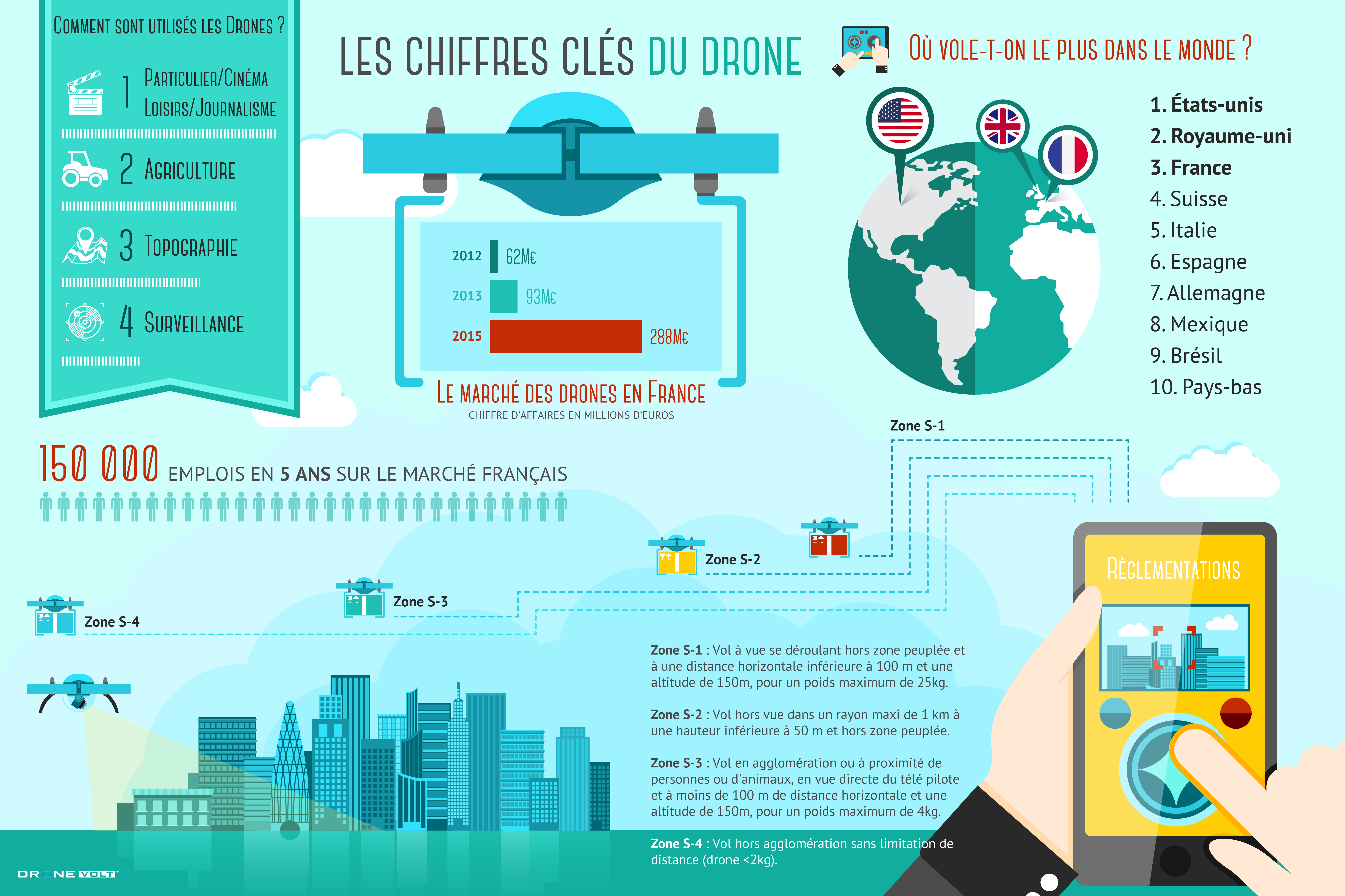 Dronevolt a publié une infographie sur les chiffres clés des drones civils, la manière dont ils sont aujourd’hui utilisés et la valeur du marché qu’ils représentent.