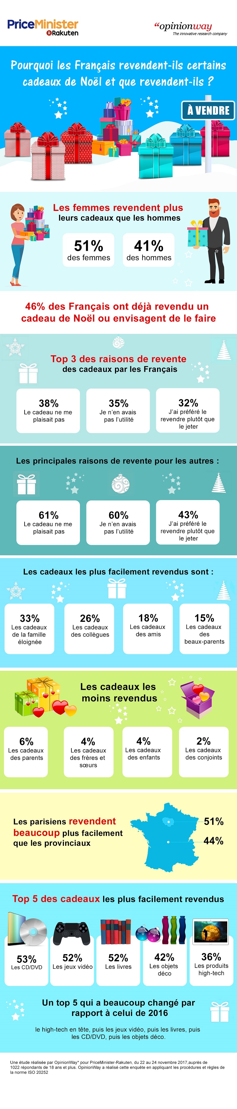 Pourquoi les Français revendent-ils certains cadeaux de Noël ? Cette infographie a été réalisée par Price Minister avec OpinionWay.