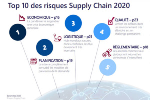 Sans surprise, la matrice des risques 2020 montre des évolutions en forte hausse des criticités en matière sanitaire, économique, de trésorerie et de règlementation. Les conséquences sur les incertitudes de planification de production et d’acheminent sur la chaîne logistique sont également importantes. Le baromètre révèle enfin le manque de diversification des sources d’approvisionnement qui met à mal la continuité d’activité en cas de rupture d’approvisionnement.