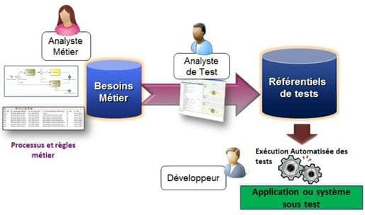 · Les développeurs implémentent et maintiennent ces mots d’action qui permettent une automatisation de l’exécution des tests métier.