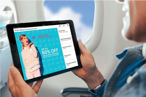SKYdealsFaire du shopping en plein vol fait progressivement son apparition et devient une nouvelle forme de divertissement de bord. Comme chacun le sait, l’ennui et l’attente sont incitatifs au passage à l’acte d’achat.