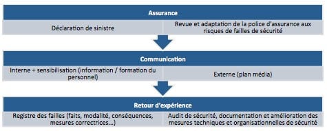 Parallèlement aux obligations de notification éventuellement applicables, il convient, outre l’identification et le déploiement des mesures et actions nécessaires pour techniquement corriger la faille, de prendre les mesures nécessaires pour se défendre efficacement.