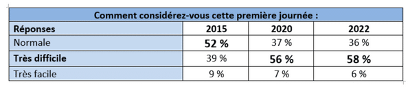 En 2015, 52% des Français trouvaient cette première journée tout-à-fait normale… En 2022, ils ne sont plus que 36 %, soit encore un point de moins depuis 2020. Depuis 7 ans, les réfractaires à la reprise sont passés de 39 % en 2015, à 56 % en 2020 et arrivent à plus de 58 % en 2022 !