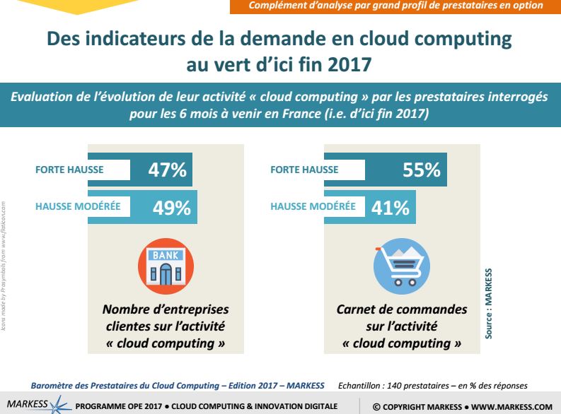 Les prestataires de solutions de cloud computing sont confiants dans l’évolution de leur marché en France. Interrogés en juin 2017, tous les indicateurs associés à leur marché sont au vert.