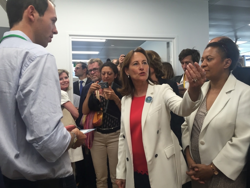 Ségolène Royal, ministre de l’Environnement, de l’Energie et de la Mer, a rencontré les start-up du nouvel incubateur Green Tech verte jeudi 8 juillet 2016. © Charlie Perreau